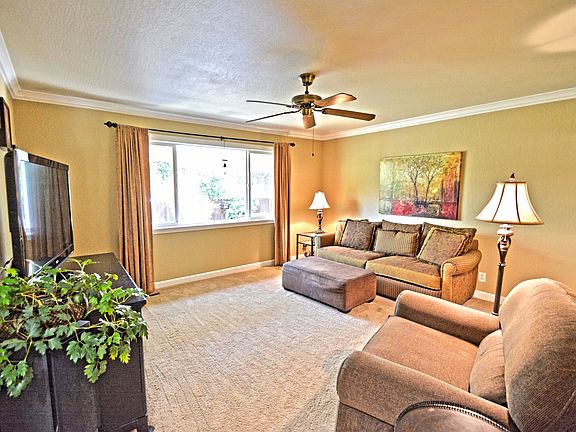 This ranch style home situated in the Mission Manor subdivision features 3 bedrooms, 2 baths, 1568 sf of living space on a 9500 sf lot built in 1968. The spacious floor plan is upgraded throughout with dual pane windows, crown molding and baseboards, hardwood, carpet, and tile flooring. The living room has a picturesque window for abundant natural light, a ceiling fan, and an additional glass panel door that opens to the kitchen. The stunning kitchen is finished with abundant Vancouver Maple with Amaretto Crème glaze cabinets, granite countertops, tile backsplash, a built in microwave, oven & gas cooktop, recessed lighting, an island with casual seating, pendant lighting over the sink, hardwood flooring and a cozy dining area that connects to the family room. The family room features a tile surround wood-burning fireplace with a custom mantel and a patio slider that opens to the backyard. The master bedroom is comprised of carpet flooring, closet space and a ceiling fan. The master bathroom features a spacious vanity with a cultured marble countertop, a walk-in shower and tile flooring. One of the guest bedrooms offers custom interior paint and a patio slider that opens to a deck. The other guest bedroom feature carpet flooring, adequate closet space and natural light. The updated hall bathroom is comprised of tile flooring, a newer vanity with marble countertop, a tile surround shower over bath with a glass enclosure and a newer light fixture. The private backyard oasis features a large covered stamped concrete patio perfect for intimate entertainment, lush drought-tolerant landscaping, citrus trees, a garden area, a detached shed and a potential dog run with access from the garage. The garage includes built-in cabinets for extra storage, washer & dryer hookups, and access to the side yard. Close to downtown, shopping, restaurants, parks and trails along with award winning Clayton schools! This property is a must see!