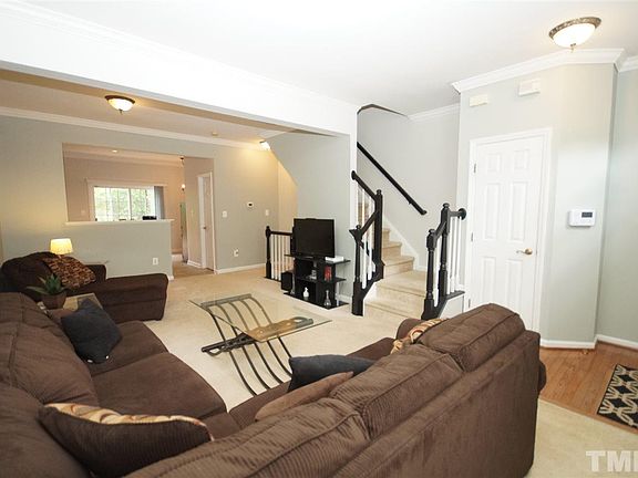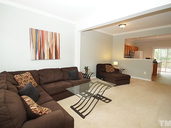 Lovingly maintained 3BR TH w. Updates! Freshly painted in soft neutral tones, Stainless Appl & Seller is offering a $2K Granite allowance for the Island Kitchen w. Modern Flooring! Updated lighting. Popular floor plan w. two large BRs on 2nd Flr which share the dual vanity Bath. Lower level offers a BR & full bath, plus Bonus or Den. Slider leads to covered porch o'looking grassy yard. Backs to Woods! Super convenient Location close to Umstead Park, 70 & tons of shopping! Popular pool & play community.