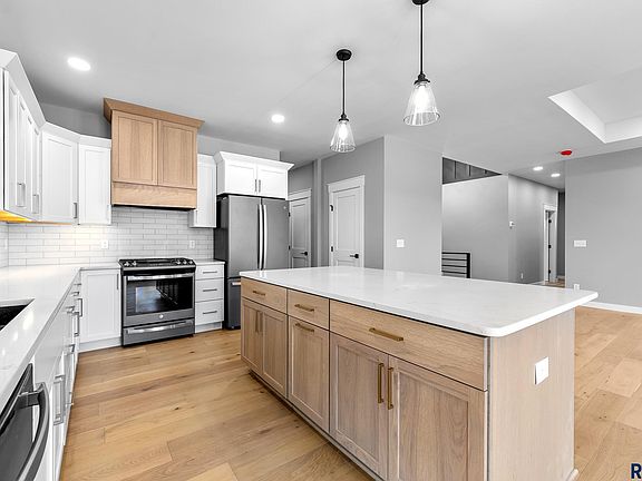 Immaculate, New Construction Ranch Walkout Home in Coveted West Sioux Falls Neighborhood! The sprawling, open main level hosts a delightful kitchen with an abundance of cabinets, open shelving, sparkling quartz counters, a large pantry with tons of shelving, and a huge island that opens to that opens to the spacious dining area with tray ceiling and 8ft sliders to the large, covered maintenance-free deck. Sun-filled living room with a beautiful gas fireplace, floor to almost ceiling windows, and a tray ceiling plus an inviting entryway with soaring ceiling, wall accents and a gorgeous light fixture. Primary suite features a stunning accent wall, his and hers vanities, quartz counters, illuminated mirrors, tile walk-in shower, and a large walk-in closet. Two more sizable bedrooms, a full bathroom, and roomy main floor laundry/dropzone also on the main level. The expansive lower level is waiting for you to make it your own with 9ft ceilings and 8ft sliders to the vast yard.