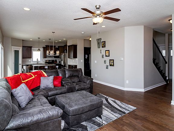 Happe Homes introduces the Alexander 1866 floor plan to the Ames area! This charming 2 story home features 4BR, 2.5BA, a 3 car garage, and an open floor plan. This home has great curb appeal with a cozy front porch; the board and batten siding and stone details dress it up. Inside you will enjoy the large picture windows, spacious kitchen with corner walk-in pantry, granite countertops, tile backsplash, and stainless appliances. The great room boasts hardwood floors throughout and a gas fireplace flanked with a modern floating mantle. 4 upper level bedrooms and with master hosting a tiled shower.