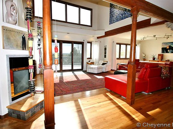 This lovely home with a picturesque view overlooking the city features 4 bedrms and 4 bths, beautiful hardwood floors, expansive windows and cathedral ceilings. Main flr laundry & master + additional master set-up in walk-out bsemnt. Enjoy unmatched view of Wyoming sunsets from the huge deck and terraced back yard. Low maintenance front yard with sprinkler system and mature lndscping. Don't miss this fabulous family home with so much room for entertaining! Fireplace Central Air Unbelievable price per sqft.