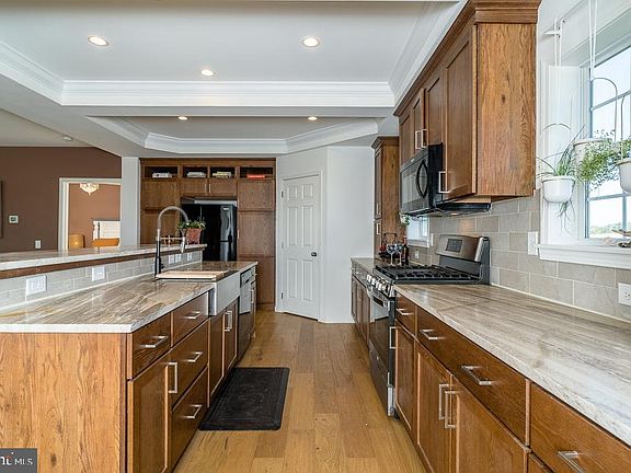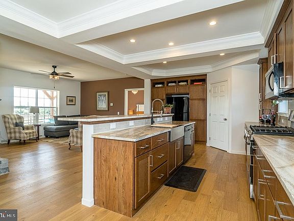 A wonderful 3-bedroom 2 bath farmette in the heart of Cross Keys. Come home from a stressful day and relax on a very large front porch and admire the serenity of mountains turning blue in the setting sun. Or snuggle up on a couch by a stone fireplace or enjoy cooking in a kitchen designed for foodies with an open floor plan, hickory floors, waffle ceiling, walnut cabinets, matt quartz counters, vegetable sink, and a huge butler pantry with shelves and cabinet space. Watch your horses from a huge master bedroom window or spend time in a modern feel master bath with black tile and a rain shower. Brand new construction, only lived in for 6 months, a high efficiency dual heating system in place, tankless propane water heater, and a 3-car oversized bay garage, 4 acres of level grazing land partly wooded. The barn is equipped with stalls, water, and space for hay. Room for garden, chickens, and horses. Close to town, shopping, hospital, vineyards, or country living at its best.