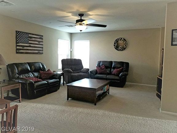 Immaculate HUGE bedrooms! Granite kitchen counters, RO & walk-in pantry w/refrigerator. Loft, ceiling fans, blinds, privacy window tinting & water softener. refrigerators, washer & dryer included. Beautiful backyard w/ RV parking.Leased solar, covered patio w/sun shades. 25 min drive to Nellis AFB.