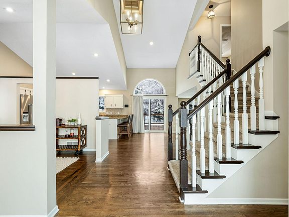 Open and bright sets the stage for this beautiful 2 story on an oversized cul-de-sac lot. The main floor features dramatic vaulted ceilings exceptional decorative hardwood floor. The kitchen boasts enameled cabinetry with glass doors, breakfast counter, granite countertops, SS appliances and closet pantry. Full glass patio door lead to the deck, patio, firepit and large pie shaped back yard. Family room includes a stone gas fireplace and floor to ceiling windows capture incredible yard. Office may be used as main floor/5th bdrm. LL family room has a wide-open space, hardwood flooring w/custom designs and bar features glass doors, wine bottle display, opening for a pair of beverage refrigerators and rustic wood paneled front. Upper-level features French doors open into owner’s suite that includes walk-in closet with custom built-in organizer, dual sink vanity cabinet, large soaking tub and shower. Garage is heated, insulated, and 3 access points to the house including stairs to the LL.