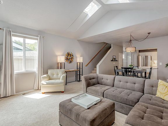 Perfect Johns Landing location. Rowhouse w/ great room style and wood burning fireplace. Thoughtfully updated throughout & move-in ready. Large master suite with room for work area. Guest room and sitting area. 2.5 baths. Fenced w/ private deck for barbecues and relaxing. Off street parking w/ driveway and garage. Walk or bike to the river, Willamette Greenway Trail, local restaurants, coffee shops and amenities. Easy city living. [Home Energy Score = 9. HES Report at https://api.greenbuildingregistry.com/report/hes/OR10055838-20180810]