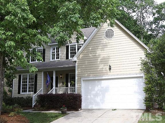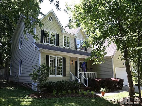 REDUCED! GREAT VALUE! Charming 3 Bedroom 2.5 Bath Home In Popular Harrington Grove! This Well Maintained Home Has a Large Family Room w/ Fireplace, Spacious Kitchen w/ Tile Back Splash + Separate Dining Room. Formal Living Room Could Be Used As Office. Large Master Suite Plus 2 Additional Second Floor Bedrooms. Deck Overlooks Private, Fenced Back Yard. Tankless Hot Water Heater, 2 Car Garage, Cul-De-Sac Lot & More. Easy Access to Schools, Shopping, RTP & I-540. Very Nice Home! A Must See!