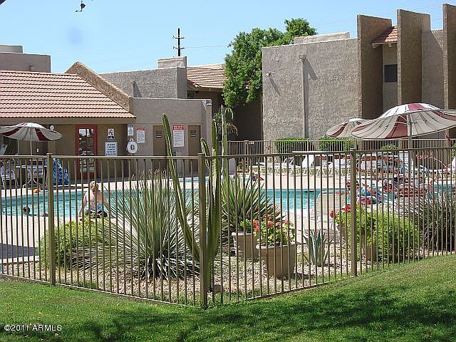Centrally Located Spacious 1 Bedroom/ 1 Bath/ 1 Car Carport Condo in Charming Quiet Spengler Manor Community! Lush Green Mature Landscaping Throughout the Complex. This Upstairs Unit has Neutral Paint, Newer Beige Carpet, Newer Duel-Pane Anderson Window & Sliding Patio Door, Covered Patio/Balcony with Storage Closet, Kitchen with Breakfast Bar & Refrigerator Included, Living Room with Built-in Entertainment Unit & Cozy Wood Burning Fireplace, Master with Built-in His & Hers Closet. The Complex Boast a Seasonal Heated Pool & Jacuzzi Spa, His & Hers Saunas, Exercise Room, Gas BBQ's , Tranquility Fountains & Clubhouse/Rec Room. Don't Miss Out on this Great Value in a Fabulous Location Nearby to Airport, Old Town Scottsdale & Biltmore Area Galleries, Shopping, Restaurants & More!