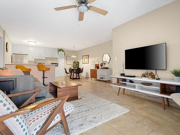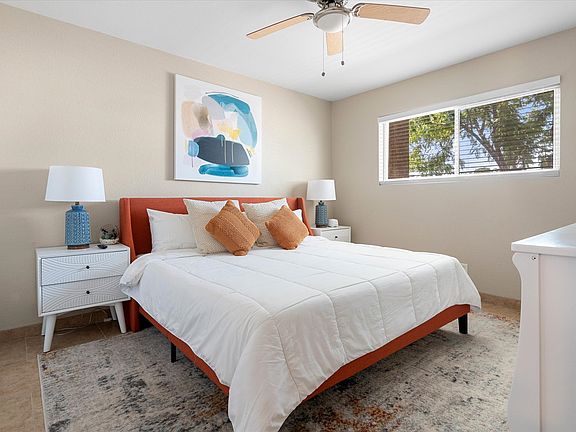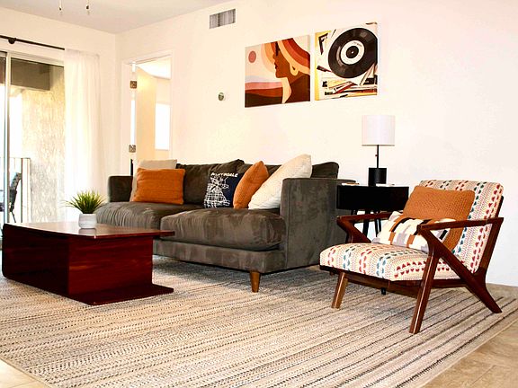 Trendy furnished condo in desirable lower Arcadia neighborhood bordering Phoenix and Scottsdale. This 2 BR / 1 BA unit with views of Camelback Mountain includes an outdoor patio, covered parking and community pool and hot tub, tucked away in the heart of the city. 1 min Arizona Canal Trail 5 min Papago Park (golf, museums, zoo, botanical garden) 7 min Old Town Scottsdale 10 min Tempe Town Lake and Mill Ave. 11 min Biltmore Fashion Park 12 min Camelback Mountain 12 min Roosevelt Arts District 13 min ASU The space Come on in and stay awhile! Wild Agave is the perfect hub for all your adventures in the Valley of the Sun. As owner-managers, we enjoy hosting longer stays (30+ days) so our guests can live like a local and experience all the area has to offer. Upon arrival, you'll be greeted by a lush courtyard that offers plenty of shade and feels like an urban respite in any season. Our second-story condo is brightly appointed with colorful modern furnishings, cool tile floors and updates throughout. The main living area offers plenty of seating with couches, a dining table for four and extra seating at the bar. The open concept floor plan connects to the fully stocked kitchen with brand-new stainless-steel appliances and freshly painted cabinets. To maximize space, we've even included a fold-out desk for your convenience. Step out onto your covered patio overlooking the courtyard to enjoy coffee or a cocktail or turn on the provided record player to relax and unwind from the day. Wild Agave includes two bedrooms, one with a King bed and another with a Queen bed, to comfortably sleep up to 4 people. Each room includes a full closet, dresser, smart TV and ceiling fan for added comfort. The bathroom is shared which includes a tile shower plus storage for toiletries and towels. There is plenty of living to do both inside and outside of the condo. From this location, you'll have equal access to hiking and biking trails, trendy dining establishments, nightlife and upscale shopping. We love its proximity to local favorites (such as the original O.H.S.O. Brewery) as well as modern conveniences, such as Target and Costco, making it perfectly situated whether you're here for a few weeks or a few months. Guest access: Within the community, you're a short walk to the heated pool, hot tub, game room/fitness center, grilling area and shared laundry facility. Our condo provides quick and easy access to the Phoenix Sky Harbor airport and many major medical centers. Other things to note: We require a 30-day minimum stay. For longer stays, we can often accommodate special pricing. No smoking indoors, and utilities and internet are included. Minimum rental term of 1 month+.