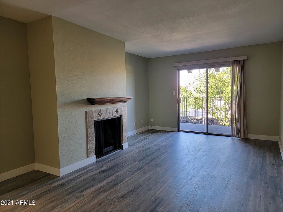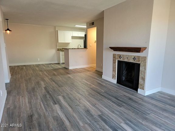 Nicely REMODELED 1 bedroom, 1 bath condo with views of Camelback Mountain. Upgrades include new laminate flooring throughout, new shaker-style white cabinets and all new appliances in kitchen, opened up from kitchen to living area, new lighting throughout.This quaint condo boasts an open floor plan, a cozy fireplace (for decor only), a lot more storage than you would expect, and a carport. Nice-sized bedroom has both a walk-in closet and large linen cabinet and a nice view of Camelback Mountain. Interior is being painted and condo will be move-in ready. If you are in need of a lovely one-bedroom space of your own, why rent when you can own!Great location in the community - close to the covered parking space, community pool/spa/sauna, fitness room & laundry facilities. HOA h