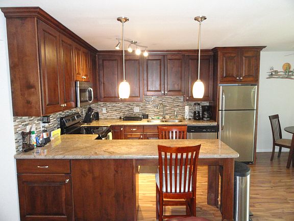 2 bedroom, 1.75 baths. Beautiful upstairs unit. Pretty wood laminate floors and tile floors in bathrooms, granite counters, stainless steel appliances, refrigerator and built in microwave. Upgraded bathrooms too ! Exercise room off the pool area! A great investor unit, or a '' lock and leave'' great for winter visitors too !