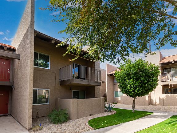 Experience luxury resort living with top-notch amenities, this 2-bedroom 2 full bath updated condo has it all. Year-round heated pool and jacuzzi, club house, exercise room, and laundry with fresh new machines. Upstairs no noise. New stainless-steel appliances, new carpet, and new paint. Everything is fresh and new with large covered patio. Owner pays for water and HOA, tenant pays for APS electric, one assigned covered parking, additional un-assigned parking uncovered, no smoking.