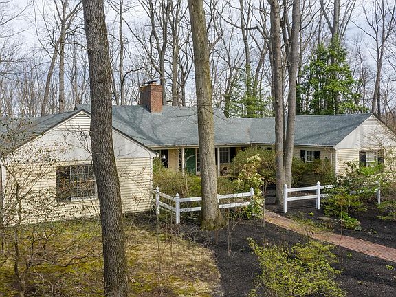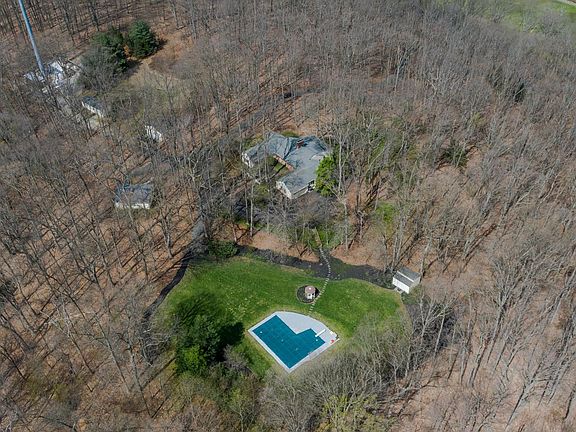 This gorgeous custom-built ranch style home is perfectly set on a private 20+ acre lot enveloped by mature woods. Listing includes the main home, guest home, and 2 potential rental properties! A covered porch welcomes you inside to find gleaming hardwood floors spanning from the foyer to formal living & dining rooms boasting custom built-ins and a 2-sided wood burning fireplace. The family room features new flooring, built-ins, a vaulted ceiling, and skylights. The huge eat-in kitchen has a large center island, a recipe desk, and plenty of cabinetry and counter space to prep and cook delicious meals. A glass slider opens to the spacious screened-in patio with cathedral ceilings, perfect for relaxing in the warmer days to come! Step outside and follow the picturesque pathway leading down to the in-ground pool surrounded by lush grass and a gazebo. Three bedrooms are on the main level and one additional bedroom is in the lower level with an attached bath. The guest home offers a living area, kitchen, bedroom, and full bath. The 2 cottages each include a full bath, kitchen, and sitting areas - and are perfect for housing guests or earning potential rental income! A detached oversized garage and a storage shed complete the buildings on this expansive property. Incredible value!