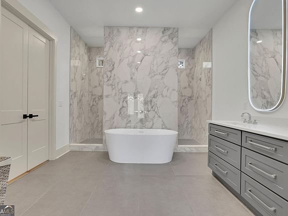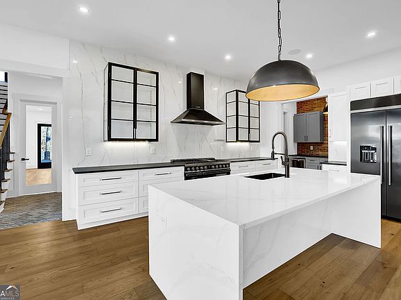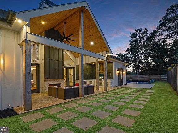 Looking for your own Oasis? This 5 Bedroom 5.5 Bathroom custom luxury home blends farmhouse warmth with European modern design inside and out. From the moment you arrive, the massive wraparound covered porch with gas lanterns, swing, and three sets of 8' custom iron doors set the tone. Inside, 8" European white oak hardwoods flow throughout. The dining room stands out with built-in cabinetry, textured wallpaper, and custom lighting, while the office offers a brick accent wall, abundant natural light, and a generous closet. The great room features a soaring fireplace finished in Italian porcelain up to the vaulted ceiling, a rustic wood mantle, and oversized windows. The gourmet kitchen is both striking and functional, highlighted by French medicine cabinets, Italian porcelain backsplash to the ceiling, and premium Smeg range and double oven. The oversized quartz waterfall island includes a composite sink and industrial Delta faucet. A separate butler's prep area adds leathered granite, beverage fridge, brick accent wall, and connects to a spacious walk-in pantry with wood shelving. Convenience continues with a laundry/mudroom attached to the 3+ car garage, featuring stone and butcher block counters, custom porcelain drop zone, and extra cabinets. This wing also includes a private guest suite with a full bath, perfect for visitors or a second office. The primary suite offers a true retreat with a dual rainhead porcelain shower, soaking tub, oversized floor tiles, dual vanities, and a massive walk-in closet. Upstairs are three additional bedrooms, a custom bath with oversized glass shower and dual vanities, plus two hidden rooms behind moving shelves, one serving as a tech hub and the other as a secret playroom. Over the garage, a private stairway leads to a huge flex space with a full bath, ideal as a media room, gym, rec room, or in-law suite. Step outside to a covered patio with a full outdoor kitchen, built-in grill by BBQ Boys, vent hood, and stone prep counters. An outdoor fireplace with TV mount makes it an all-season space. Beyond, the heated saltwater pool and spa with privacy fencing create a backyard oasis. Additional highlights include custom lighting and fans, tankless water heaters, three HVAC systems, built-in Sonos, low-voltage wiring, whole-house tech package, and attic storage. The oversized garage easily accommodates a boat, motorcycles, or ATVs. With Easy Access to HWY 400, Lake Lanier, Dawsonville Outelts, and The Cumming City Center, its no wonder why this home is The Perfect Oasis you have been looking for.