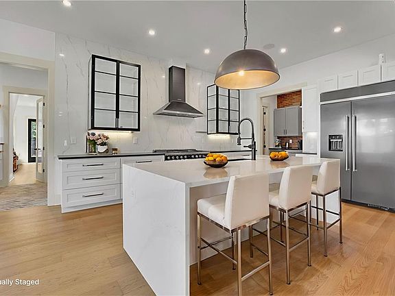 Looking for your own Oasis? This 5 Bedroom 5.5 Bathroom custom luxury home blends farmhouse warmth with European modern design inside and out. From the moment you arrive, the massive wraparound covered porch with gas lanterns, swing, and three sets of 8’ custom iron doors set the tone. Inside, 8” European white oak hardwoods flow throughout. The dining room stands out with built-in cabinetry, textured wallpaper, and custom lighting, while the office offers a brick accent wall, abundant natural light, and a generous closet. The great room features a soaring fireplace finished in Italian porcelain up to the vaulted ceiling, a rustic wood mantle, and oversized windows. The gourmet kitchen is both striking and functional, highlighted by French medicine cabinets, Italian porcelain backsplash to the ceiling, and premium Smeg range and double oven. The oversized quartz waterfall island includes a composite sink and industrial Delta faucet. A separate butler’s prep area adds leathered granite, beverage fridge, brick accent wall, and connects to a spacious walk-in pantry with wood shelving. Convenience continues with a laundry/mudroom attached to the 3+ car garage, featuring stone and butcher block counters, custom porcelain drop zone, and extra cabinets. This wing also includes a private guest suite with a full bath, perfect for visitors or a second office. The primary suite offers a true retreat with a dual rainhead porcelain shower, soaking tub, oversized floor tiles, dual vanities, and a massive walk-in closet. Upstairs are three additional bedrooms, a custom bath with oversized glass shower and dual vanities, plus two hidden rooms behind moving shelves, one serving as a tech hub and the other as a secret playroom. Over the garage, a private stairway leads to a huge flex space with a full bath, ideal as a media room, gym, rec room, or in-law suite. Step outside to a covered patio with a full outdoor kitchen, built-in grill by BBQ Boys, vent hood, and stone prep counters. An outdoor fireplace with TV mount makes it an all-season space. Beyond, the heated saltwater pool and spa with privacy fencing create a backyard oasis. Additional highlights include custom lighting and fans, tankless water heaters, three HVAC systems, built-in Sonos, low-voltage wiring, whole-house tech package, and attic storage. The oversized garage easily accommodates a boat, motorcycles, or ATVs. With Easy Access to HWY 400, Lake Lanier, Dawsonville Outelts, and The Cumming City Center, its no wonder why this home is The Perfect Oasis you have been looking for.