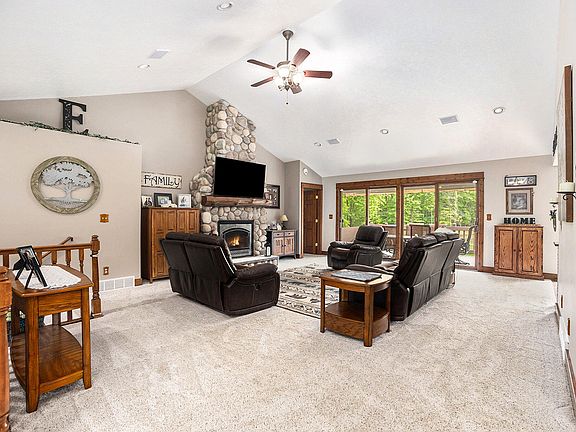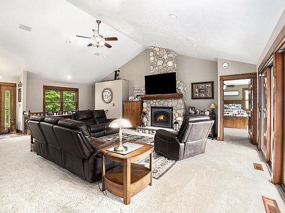 Escape to your own private oasis nestled on 10 acres of serene countryside, boasting a picturesque pond in the sought-after Fruitport School district. Step inside to discover the charm of a stone fireplace gracing the living room, inviting you to cozy gatherings on chilly evenings. Entertain with ease in the gourmet kitchen, where culinary adventures await.