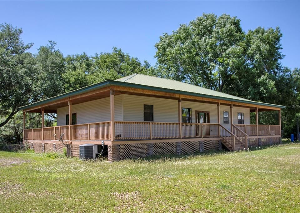 Country Haven with Modern Comforts – Just 22 Minutes to Walt Disney World® Bring your offers on this exceptional retreat set on over 3.5 acres of private land, offering the rare combination of peaceful country living and everyday convenience. Tucked away yet close to shopping, medical facilities, dining, entertainment, and Walt Disney World®, this property is ideal as a primary residence, vacation home, or income-producing Airbnb opportunity. A standout feature of the home is the expansive 1,728-square-foot wrap-around elevated porch, extending 8 feet from the structure and accessible from the front entry, primary suite, and breakfast nook. This impressive outdoor living space is perfect for relaxing, entertaining, or enjoying the peaceful, open surroundings from every angle. Inside, the open-concept great room showcases high ceilings, a spacious kitchen, and seamless flow into the living and dining areas—ideal for gathering and hosting. The thoughtfully designed split-bedroom floor plan provides privacy for owners and guests alike. Additional highlights include a complete interior fire sprinkler system, surround sound system, and a massive 40’ x 60’ detached garage, perfect for RV and boat storage, a workshop, or serious hobby space. Furniture is available for purchase, offering flexibility for a smooth move-in or rental setup. With modern features throughout and room to spread out, this property delivers space, privacy, and proximity to Central Florida’s most sought-after attractions—all in one remarkable home.