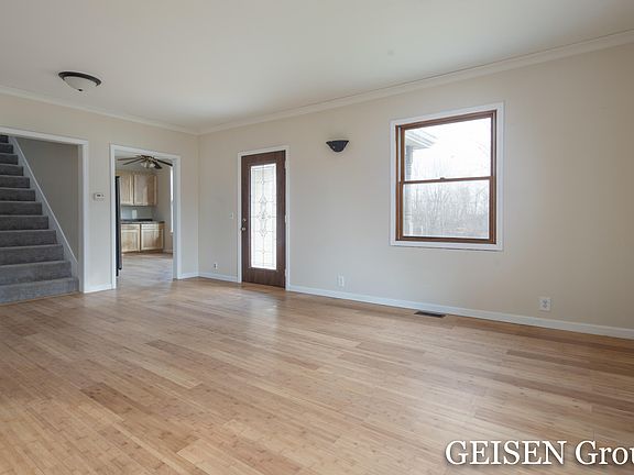 Nicely remodeled and very affordable is this 4 bedroom, 2 bath , 1.5 story home offering approximately 1,824sq'. This home's amenities include: spacious front living room with new bamboo flooring, totally remodeled kitchen with corner eating area, main floor master bedroom with private master bath plus second smaller main floor bedroom or office/game room, large main level full second bath and laundry, 2 upper level bedrooms, fresh paint throughout, new flooring, covered front porch, wrap around rear deck overlooking extended back yard and 1.5 car garage. Brand new 4" well, newer septic system (details are available) and Home Inspections have just been completed and are ready for your review! Excellent opportunity for those using low down conventional or zero down RD financing programs!
