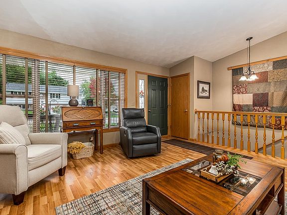 Come take a look at this one owner well taken care of 3 bedroom, 2.5 bath home. It has a beautiful four seasons room with lots of light and a gas fireplace to cozy up to in the winter. The vaulted living room has a wood burning fireplace if that is more your style. Enjoy a master bathroom with a walk in shower right off the bedroom. The basement is finished with a large open area to do with it whatever works for you. There is a garage underneath for all your storage or lawn care needs to take care of this well manicured yard.