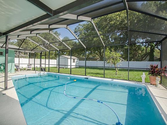 Honey, stop the car! This is truly one of the most well maintained homes that I have ever seen. This solid block ranch home in downtown New Port Richey is STUNNING! Just a few blocks from the river and downtown NPR, this 3 bedroom, 2 bathroom, 2 car garage home with a POOL is gorgeous. The home sits on a 1/4 acre lot with plenty of room between the neighbors. The extra long driveway and carport (additional to garage space) provide room for plenty of cars. The spacious yard also has a vinyl fence and alley access in the back. The interior of the home features laminate flooring throughout, a beautiful remodeled kitchen with newer appliances. The refrigerator is brand new and never used and there is a also a built-in oven and cook top, which is an upgrade over a standard range! The shed in the backyard also conveys with the sale. 2018 Water Heater, 2015 HVAC, Roof approx 10 years old, Windows & Doors replaced in 2010, Washer/Dryer 2011, brand new pool pump and garage door opener too! It is very hard to find a home with this many updates and on such a beautiful street. Priced to sell!