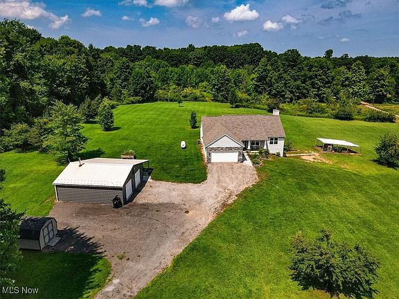 Looking for a newer contemporary home on almost 13 acres with woods to hunt or explore. You have found it! Newer home built in 2018. This home is a 3 br, 2 baths split plan nestled in a private setting in Trumbull Twp. Work from home from the home office, 4th bedroom or playroom overlooking the front yard. It is like owning your own brand-new home. Outside is a 30 x 30 heated outbuilding for all your wood working enjoyment or hobbies. Outbuilding has 100-amp 240-volt panel. It also has a 12 x 30 attached canopy. Gorgeous eat in kitchen with large kitchen island. Great room that includes dining area. Large walk out basement with wood burner to provide a cozy home all winter long. Back deck for you entertaining needs. Two car attached garage with laundry room right off the garage.