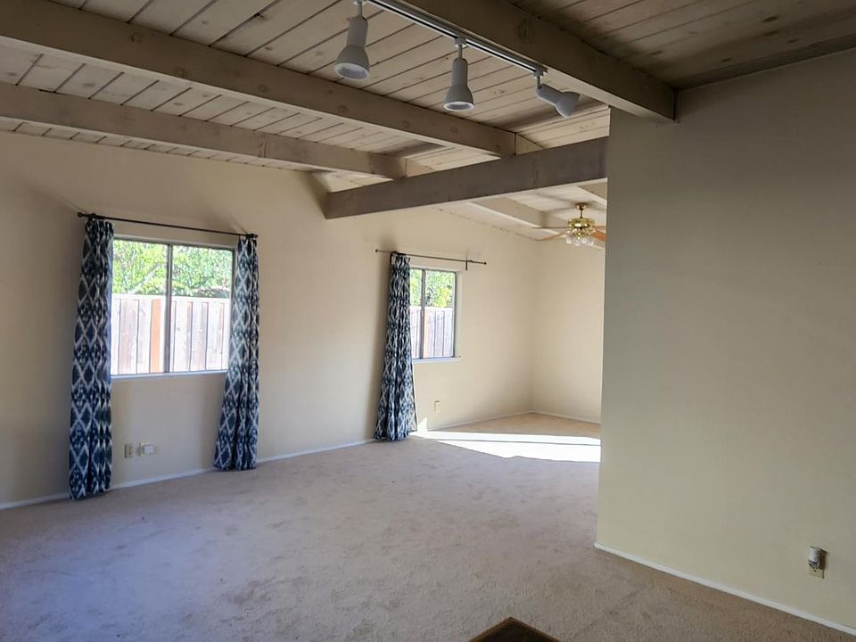 This newly painted 2 bedroom, 1 bath house with a new roof is now available for rent. This bright and airy home is conveniently located between Oakland/San Francisco and Orinda/El Cerrito BART stations. With beautiful beam ceilings and many windows, it's very private with its own large front and backyards. This spacious house features an electric kitchen, gas heater, washer and dryer, and an open space living room/dining area. Water is included with the rent. Parking is available on the property. The owner pays for water.