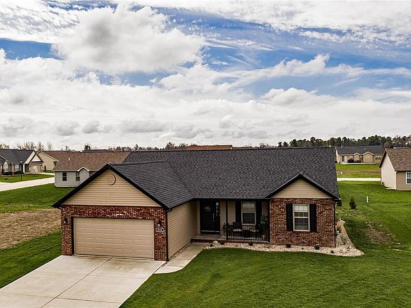 Better than new, this one year old gem has an established yard, landscaping and pleated window shades throughout. Easy to like floor plan with extended hardwood flooring through the entry, down the hallway to the bedroom wing, into the kitchen, dining room and the vaulted greatroom. The kitchen features granite countertops, stainless appliances, a breakfast bar and a tile back splash. The dining room opens to the patio and rear yard. The master suite offers a walk in closet and private bathroom with a 5 foot shower with seat and dual back saver vanity. The partially finished basement has a generous sized family room, rough in plumbing for a future bathroom, egress window and plenty of storage space plus future expansion. Smithton District 130 Schools and Freeburg High School.