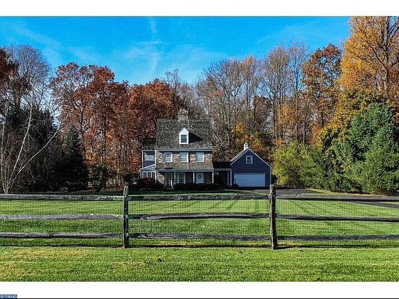 Long Lane Farms is a private & secluded, 4-home enclave featuring one of the most spectacular entrances in all of Bucks County, PA - your very own Cherry blossom-lined driveway! Its good-looking, classic fieldstone & cedar farmhouse design wraps up an intriguing 3,300SF, 4BR/4.5BA layout that's ready for today's buyers - bright and open with numerous options. This custom Stoler-built home sits deep, away from country road traffic, on 5 acres with excellent supporting real estate. This lot definitely captures the foliage and essence of a sought-after Bucks County hide-a-way between Doylestown and New Hope boroughs, 60 minutes to CC Philadelphia & 90 to NYC. The home's formal entrance is tucked under an inviting rocking chair-worthy porch, where the foyer opens into a living room of random-width wood floors, exquisite molding and trim work around a fireplace and side bar area, French doors open to allow summer and fall breezes to run thorough the home. A generously-sized office with built-ins, full of windows, is adjacent. A casual flow throughout blends the kitchen into a lounge warmed by a wood-burning stove for an open breakfast room concept. A casual entrance and interior-garage access affords the owner easy entry into the kitchen hub. Formal dining is coming back into style and this home has the perfect room for entertaining friends and family. Up the stairs, the 2nd floor hosts a private master suite with wood burning fireplace, lounge area, cedar and walk-in closet/dressing area. Also there is a large 2nd bedroom and a hall bath. The voluminous, finished, 3rd floor can act as another master retreat, as-is, complete with full bath or could be anything you imagine: bunk-style bedroom, artist studio with inspiring long distant views, yoga sanctuary, game / hobby room, etc. All three floors are separately zoned for maximum and accurate comfort, 2nd & 3rd are newer HVAC units. The fourth bedroom is a private access suite, above the garage, allowing for tons of living arrangement options - au pair, in-laws or ones returning to the nest. A full, unfinished, basement with excellent ceiling height is ready and waiting to be finished for additional living space, home theater, gym or sauna. This is the first time becoming available to the public since completed and loved by its original family...I welcome you to schedule a private showing today!