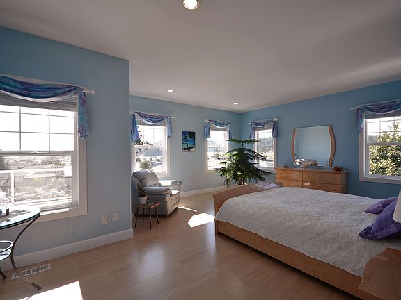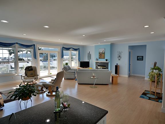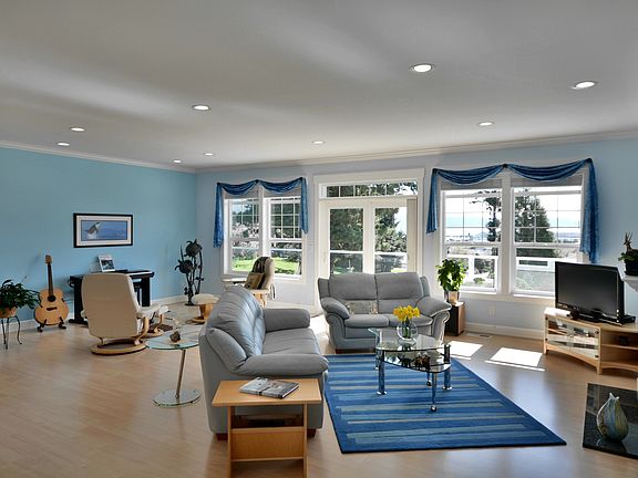 Stunning open one level. Perched on beautifully landscaped site overlooking Skyline marina, Burrows Bay and Islands. Bright and cheery, joyful colors, high ceilings, loads of high windows, semi-open plan, kitchen with sparkling granite and stainless, loads of cabinets, large island with eating bar, opens to both dining and living area. E-Z care quality laminate floors. Spacious view master w/sitting area, huge walk-in closet and luxurious compartmentalized bath. Oversized finished garage.
