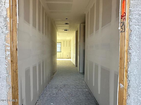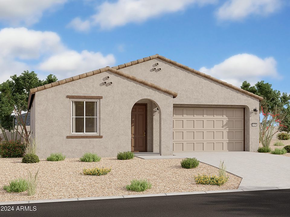 Come see this beautiful new construction single-story home. The outside has a spanish style exterior with a desert landscape. You walk through a grand 8 ft foot tall door with 9 ft tall ceilings and plank ceramic tile everywhere minus the bedrooms making this open floor plan very spacious. The 2 secondary bedrooms and secondary bathroom sit in the front of the home while the primary bedroom is tucked away in the back of the home creating split floorplan. The open concept of the kitchen and living area make this space great for entertaining. The dining area off the kitchen is great addition to the space, keeping it open concept, however having a designated area. This home sits on an oversized homesite, allowing you to create your dream backyard oasis. The kitchen has beautiful white shaker style cabinets, a large kitchen island with beautiful, upgraded clean white quartz, and grey subway tile backsplash to bring everything together. Lastly, stainless-steel appliances including dishwasher, microwave, and stove. The kitchen sink is a undermount sink with upgraded kitchen faucet that is conveniently located in the island. Additional features in this home include a pendant prewire in the kitchen so you can add your own flair on pendant lights, a 30" plastic wiring panel with microduct to store your modem and router and hide the wires for a nice clean finish, and square contemporary looking sinks in both bathrooms. Located right off the new Loop 202 and Dobbins. Great location close to dining, freeways, parks, and entertainment.