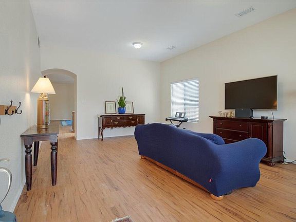 Welcome to this charming single level 4 bedroom, 2 bath home situated in a quiet neighborhood, offering the perfect blend of privacy and community with walking distance to restaurants, shops and easy access to the Bosque trails.Upon entering the home, you'll be greeted by a formal living and dining area that leads to the modern kitchen with casual dining space. The kitchen is equipped with stainless steel appliances, a pantry, and a convenient island for extra counter space. It's the perfect spot to prepare meals and entertain guests. The second living area offers access to the covered patio and backyard, where you can enjoy the beautiful landscaping with artificial turf and outdoor living space offering a peaceful oasis to relax and unwind.The covered patio is the perfect place to enjoy