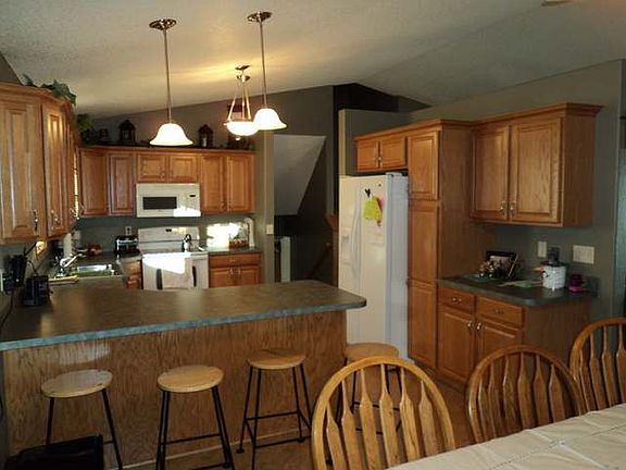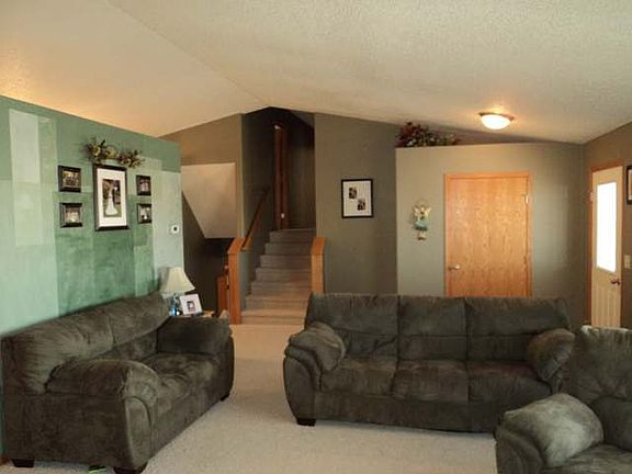 Quiet Country Living in this 3100 sq ft home. The main floor offers a large living area with open dining and kitchen. The upstairs features 3 beds and 2 baths with laundry on one level! The master bedroom is enormous. Lower level is unfinished with space for 1 or 2 bedrooms, bathroom and family room. You will appreciate the dual fuel heating system with geothermal. Large three stall garage that is finished. Ground level walkout family room to the huge back yard complete with volleyball court, established trees and drip irrigation system. Paved streets with no special assessments.