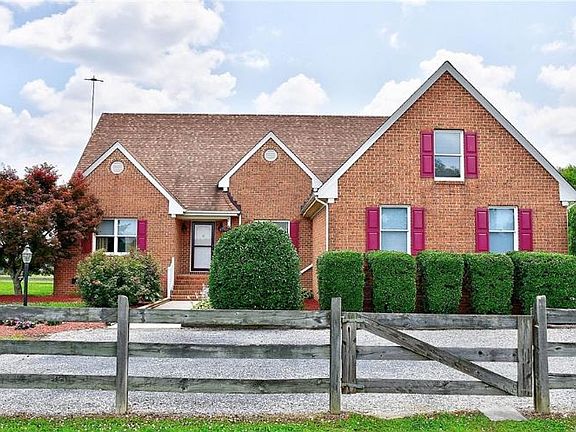 In Isle of Wight County, near Windsor. Beautiful brick ranch, 3 stall barn and 2+ acre stocked pond with a pond house on 15 well established acres. The home has a screened in porch that looks out over the back pastures and pond. Kitchen updated with granite counter tops, appliances, cabinet hardware, light fixtures in 2022. Primary bathroom updated with granite counter tops, lighting, fixtures in 2023. Roof replaced in 2011. AC Unit replaced in 2014. Encapsulated crawlspace in 2019. Entire upstairs is ready to be converted into more living space. Pastures are well maintained. Gates can be closed to make 3 separate pastures. Riding arena. Barn has a feed and tack room, wash area with hot water on demand, and lean to for your tractor. There is a hay barn and covered hay feeders in the pastures. This farm has been well cared for and is ready for you to bring your horses and enjoy the best of country living while only being 20 minutes from Downtown Suffolk.