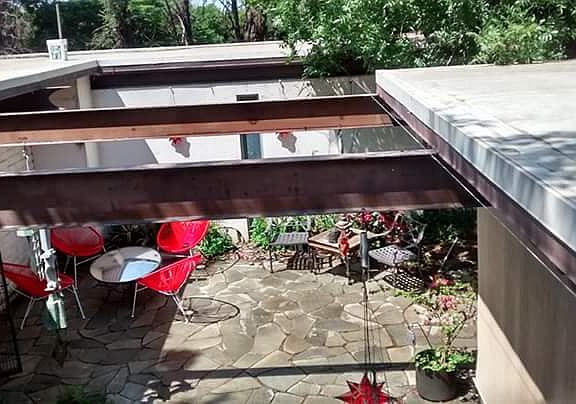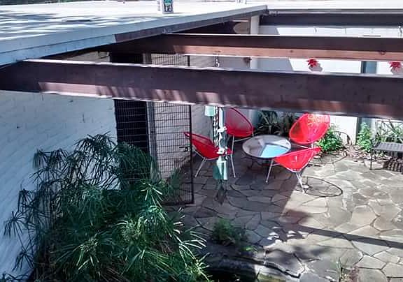 Street discreet International style steel construction hillside house built as the private residence of the general manager of Kaiser Steel. MCM Case study house. Long private gated at street private drive back to street discreet covered carport and courtyard entry. Design award winning and passive solar architecture design award winning house. High ceilings throughout. Flat roof. extensive cantilevered deck over the hillside which has been structurally stabilized. Floor to ceiling glass curtain wall of all view of entire northern elevation public rooms and MBR courtyard entry. Sweeping views over 180 degrees of Angeles Forrest, San Gabriel Mountains, San Bernardino Mountains with springtime snow capped mountains and fragrant orange blossom of the citrus orchard. Two car garage with window wall garage door fully HVAC and door to house works well as a studio/ workspace. White ORCO slump block throughout the site from the sweeping curved retaining walls of the courtyard entry to the sweeping piano shaped walls up the football field length driveway. Spectacular sunset views every night and 4th of july fireworks can be seen as many as six cities with a front seat to Mt Rubidoux fireworks. Natural stone slate courtyard exterior room. A modernist treehouse feel of elegant retreat. City lights view and on a clear day can see all the way to the Pacific. New roof. New driveway. New garage door. New kitchen.