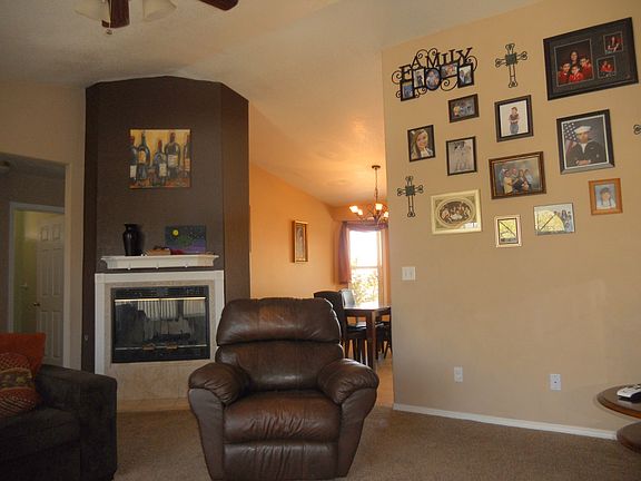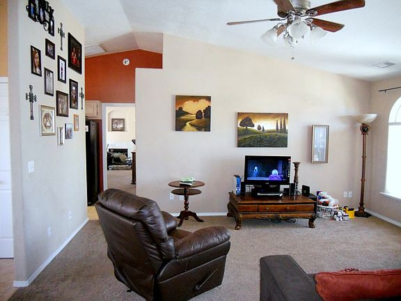 Enjoy single level living with a split plan, vaulted ceilings and RV parking pad in this stylish and contemporary 3 bedroom 2 bath Prescott Valley home on a large landscaped lot with mature trees. It offers generous arched windows, updated light fixtures, tile in kitchen and baths, newer carpet, abundant storage in several pantries, and plenty of room for the family inside and out. A permitted addition adds square footage to the master bedroom and offers a huge walk in closet and French doors to the back yard with block wall fencing and large shed perfect for a playhouse or workshop. A covered patio adjoins the spacious kitchen and dining area, encouraging outdoor dining and entertainment. The back yard features massive shade trees, swing set for the young at heart, pond with fountain, rose garden and large shed. A level entry and no steps in the home make for great accessibility and easy strolling for young and old alike. The yard offers unlimited play for the young and young at heart, gardeners, or pets. This Prescott Valley home is conveniently located near Hwy 89A for easy trips to Phoenix or over Mingus Mountain to Jerome and Sedona. Shopping is just minutes away as is the entertainment district of Prescott Valley with dining, shopping, and Tim’s Toyota Center.