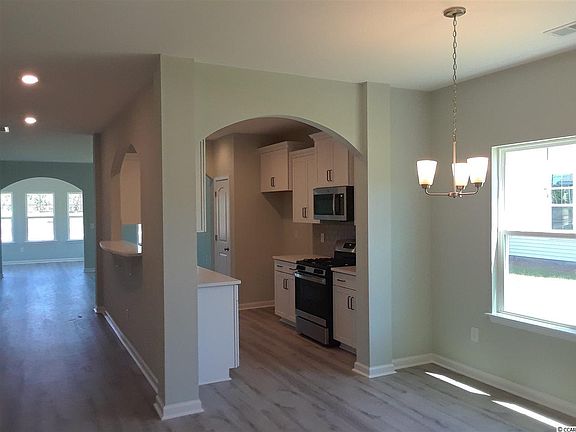 READY TO MOVE INTO!! Ask about Flex $$ incentives. Model Home open every day! Mon-Tues 11-5, Wed 1-5, Thurs-Sat 11-5 & Sunday 1-5. Two-story home with 4 bedrooms and has 2.5 Baths. This Vernon plan has Super Spacious bedrooms with the Master Suite on the main level and the 3 others are upstairs. 3 of the guest bedrooms are as large as the master and have walk-in closets. From the front door, Luxury Vinyl Plank leads through the arched entry way leads into the dining room and into the open kitchen and great room. The kitchen features stainless steel gas range, dishwasher and microwave.pantry and a raised bar for entertaining. White shaker, enamel cabinets with Gorgeous Quartz counter tops. The large master suite with tray ceiling is located on the main level and features a spacious Tile Separate Tub and Shower, walk-in closet, water closet, raised vanity with quartz tops, framed mirror and center bank of drawers & linen closets. This home is complete with a large first floor laundry and powder room. Family room walks out to light filled sunroom for relaxing and fencing across roomy back yard. Additionally, we include an irrigation system to keep your yard looking good. You can enjoy all of the our award winning hauSmart standard features like: the enhanced appliances and kitchen cabinetry with varied heights & large crown molding, and, others such as the Radiant Barrier Roof Sheathing, a Lennox HVAC system designed and tested by an independent 3rd party, R-38 attic insulation, and a Rinnai tankless hot water heater that you'll appreciate when you receive your monthly power bill. And because it’s hauSmart, the home is healthier for you and the environment. Clear Pond at Myrtle Beach National in Carolina Forest of Myrtle Beach is a natural gas community and has resort style amenities featuring a large fitness center, a beautiful club house and two pools. Staged pictures of this Vernon are from another Vernon home in the neighborhood. See sales representative for specific details.