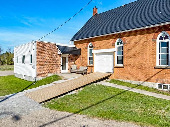 Upgraded home with historical character for the artisan or entrepreneurial family. Located in Hamlet of Hopetown, former Trinity United Church has inside entry to open bungalow that is all renovated - with style. Large living, dining and kitchen offer laminate flooring. Livingroom built-in entertainment centre, 2022 propane fireplace stove and office nook. Dining area adjacent to kitchen with upscale cabinetry including corner displays, glass mosaic backsplash, granite countertops and island breakfast bar. Luxurious five-piece bathroom of polished river rock, spa rainhead shower, jacuzzi tub and electric fireplace with multi lights. Lower level wide open finished spaces for potential bedrooms or family area. Here too is utility-laundry room. On main floor, inside door leads to church that's currently a workshop garage - or, could be your business/store with convenient side loading door. Zoning for bakery, store, restaurant, clinic & more. Bell hi-speed. Cell service. 10 mins Lanark.