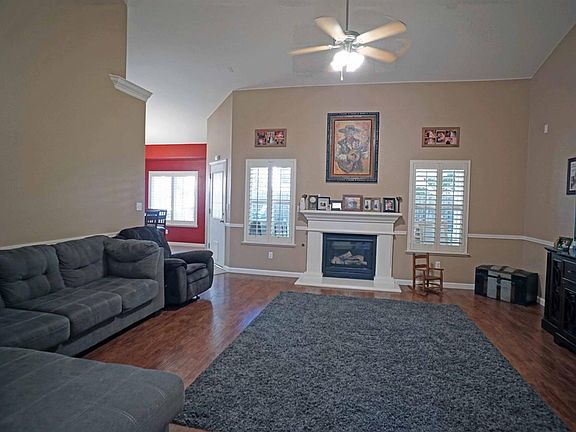 This is a very well maintained Lenner home with 3 bedroom, 2 bath in the Northwest area. It features an open floor plan with large great room that boast newer wood laminate flooring, vaulted ceilings and gas fireplace. The bright kitchen features a corner pantry, breakfast bar, gas stove top and plenty of counter space to prepare your family meals. Connected to the kitchen is a large eating area with tile floors and access to the outdoor patio area. Master bedroom has two walk in closets, vaulted ceilings with crown molding. The master bath features duel sinks, separate soaking tub and shower and outside access to the patio. The backyard has an extra deep patio with decorative patio cover, gazeebo and drought friendly foliage. Other features are; inside laundry room, wainscoting and crown molding, as well as plantation shutters. Playhouse and pavers under the playhouse are not included. Contingent upon Sellers finding replacement home. You don't want to miss out on this one.
