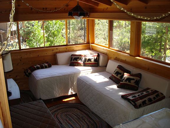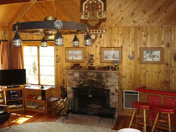 HIDDEN COTTAGE. Located in one of Fern Valley's most coveted areas, this charming cottage has a tucked away feel and offers good sun and views of Tahquitz Peak and Lily Rock from the private deck and beautiful, spacious yard. The interior of tongue and groove cedar paneling and original douglas fir floors are a wonderful complement to the native stone fireplace and the dramatic open beam styling. A cozy dining nook adjoins the cottage kitchen with original cedar cabinets and classic 1950's era countertop, refrigerator and range hood. There is an upstairs loft bedroom (no closet) that sleeps four, a light and bright den/sleeping room and a bath with shower. Front and rear decks take advantage of the beautiful lot and views and offer solitude and privacy. This classic cabin comes mostly furnished and has been in the same family for 45 years. This is an unbeatable combination of a charming mountain cabin with a great location.