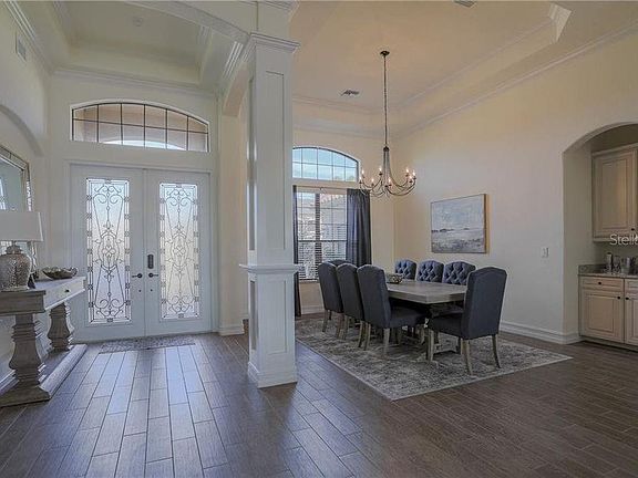 - Crown Molding, Eat-in Kitchen, In Wall Pest System, Open Floorplan, Solid Surface Counters, Solid Wood Cabinets, Stone Counters, Tray Ceiling(s), View, Walk-In Closet(s)