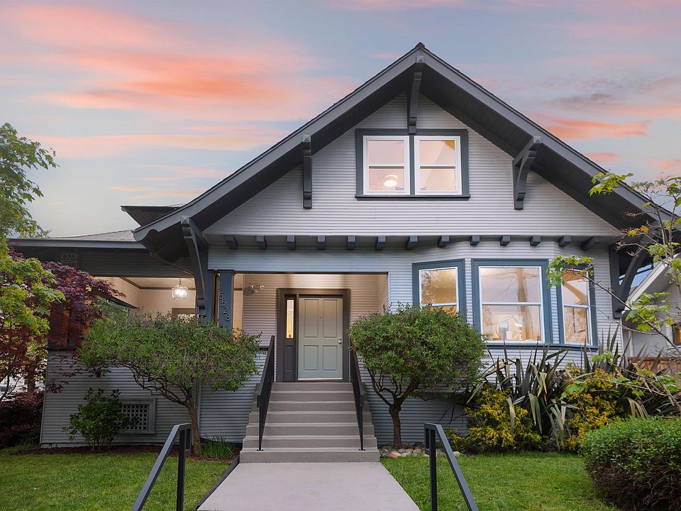 Enchanting & spacious: this storybook 1915 farmhouse provides vintage charm, modern updates, great flow, flexible spaces, lush front & back yards, & many pluses! Beautifully updated w/attention to vintage details, incl. 3 decorative fireplaces, built in bench window seating, and gleaming wood floors. 5 bedrooms, 2 full baths, 2 plus rooms, plus detached garage w/ bonus workspace. Updated kitchen w/ laminate counters & marmoleum checkered floor. You'll love the shaded east coast style (guitar playing) FRONT PORCH, rarely seen here. Large yard w mature fruit trees, Japanese maples, planting beds, patio, more! Back yard fully fenced and private. The detached garage plumbed for water and electric, includes nicely finished workshop space perfect for band practice, play space, painters studio, or media room. You'll be making memories & hosting gatherings here for many years to come. Great Bushrod-N.Oakland location just steps to Temescal shops & restaurants, Whole Foods, child & pup parks, easy commute options. Central to 3 BART stations. Close to the coveted Oakland Public Tool Lending Library and Childrens Hospital! Many electrical & plumbing upgrades, sewer lateral compliant.
