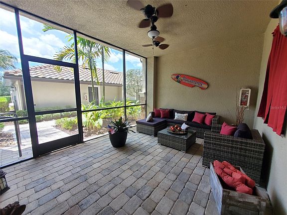 TENANT in place with annual lease until 1/31/22. This unit is not only on the 9th fairway, but offers 2 bedrooms, plus a den/study, SS appliances in the kitchen and granite counter tops in both the kitchen and the bathrooms. The Verandas at Lakewood National are maintenance free and include a one car detached garage. Besides two top ranked golf courses, amenities include 24-hour guard gate, pickle ball, bocce ball and world class har-tru tennis courts. Cool off with a swim in the resort style pool after a good workout in the state of the art fitness center including a sauna, steam showers, spa and locker rooms. Enjoy drinks by the pool at the Tiki bar. Don't wait for new construction, schedule your showing now.