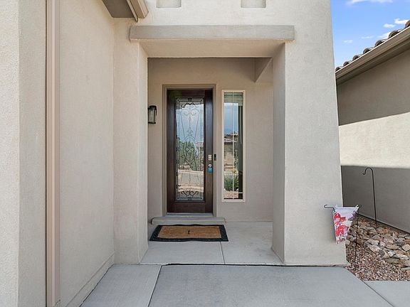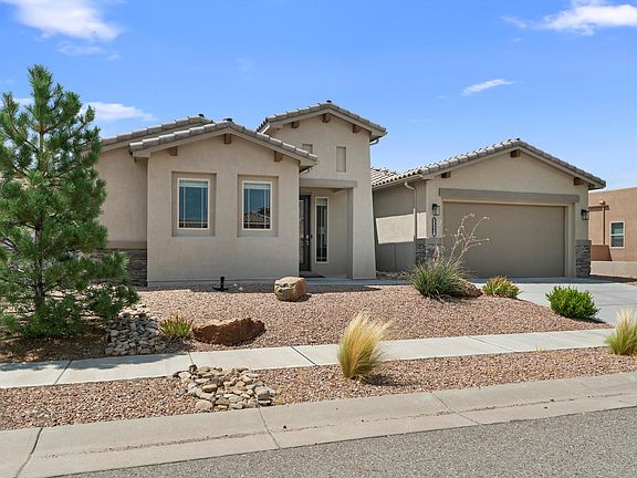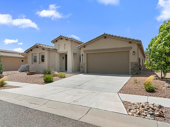 A brightly lit foyer welcomes you to this METICULOUS 3-bedroom, 2.5-bath home w/3 car tandem garage. Open layout great for easy living or entertaining. Spacious kitchen island opens to great room and breakfast nook. Chef's kitchen boasts a built-in oven, gas cooktop. Flex room for office, den, or formal dining. Large primary suite w/new carpet is a tranquil retreat. Loads of natural light, double sinks, soaking tub, separate shower, & walk-in closet. Unwind on the covered patio. Huge xeriscaped backyard. NO backyard neighbor. With top-rated Rio Rancho schools, miles of trails for hiking, walking, biking. Private community center w/2 pools, fitness center, and loads of activities. 20 mins to I-25, easy N or S commute. Come home to Mariposa's GATED community of The Peaks. MOVE-IN READY.