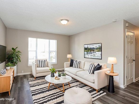 Please note, our homes are available on a first-come, first-serve basis and are not reserved until the lease is signed by all applicants and security deposits are collected. This home features Progress Smart Home - Progress Residential's smart home app, which allows you to control the home securely from any of your devices. Want to tour on your own? Click the "Self Tour" button on this home's RentProgress. Some images have been virtually staged to help showcase the potential of spaces in the home. The furnishings shown are for illustrative purposes only and are not included in the home. You'll be impressed by this tidy Jacksonville rental home that offers 1,109 square feet of space with three bedrooms and one bathroom. Enter through the bright and spacious foyer, and move into the living room. Nearby, you will find a welcoming dining room and kitchen. Vinyl plank flooring runs attractively through many of the rooms. The kitchen sports stainless steel appliances, beautiful countertops, and lots of cabinet space. The kitchen door leads to the fenced backyard. The bathroom's marbled tub and shower provide a spacious look, and the small window has frosted glass panes for privacy. The house is conveniently close to a recreation area. Schedule a tour now.