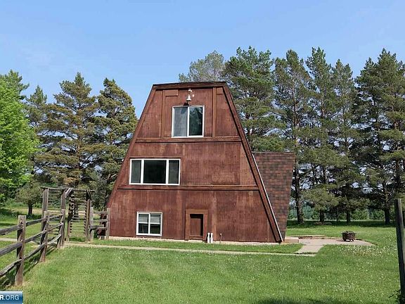 3+ bedroom, 1.75 bath A-frame home on 14 acres with 2 garages and additional storage buildings. Features include: Spacious living room with vaulted ceilings & 2 patio doors to the enclosed deck. Kitchen with painted wood cabinets & appliances and open to the dining room. Large upper level loft, use as a 4th bedroom or a great space to hang out. 3 lower level bedrooms, a rec room & a 3/4 bathroom with a new shower stall waiting to be installed. Tongue & groove freshly painted paneling through out. New carpeting in loft and laminate flooring throughout main floor. New furnace 2022. New roof on home 2018. Cedar siding. 24x36 A-frame style garage. 14x24 garage and multiple storage buildings. This is a great property to enjoy the Great North Woods or start your own hobby farm.