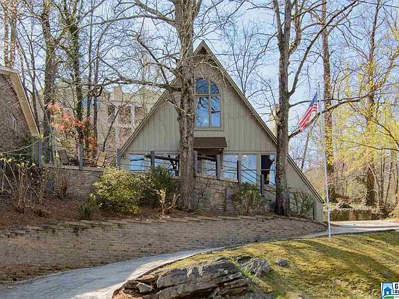 Like having your own cabin in the woods, this 1960's A frame is nestled on the ridge overlooking Crestwood, with views of the airport and city lights! The open living room and kitchen are oriented to take full advantage of the view with lots of floor to ceiling windows facing the open front patio-sure to be your favorite place to entertain! Spacious kitchen with breakfast bar, Viking gas range, concrete countertops and custom cabinets/drawers. Multiple living spaces-formal living room with gas fireplace at the front of the home and additional family room at the back. Full bath with large bedroom on the main for kids or guests. Master bedroom upstairs with full bath and large sitting area, perfect for a home office. The loft/balcony and the open living room ceiling combine to add a sense of spaciousness throughout. There's also a private, covered porch off of the master bedroom, the perfect spot for relaxing! Home is super convenient to UAB, downtown, restaurants and nightlife!