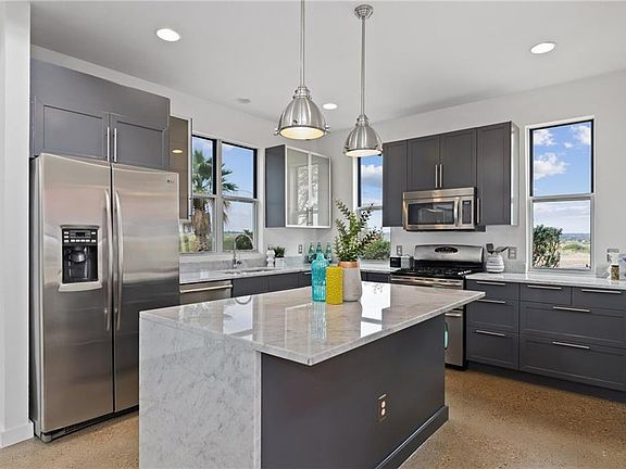 Stunning modern home with delightful city views in highly sought after Agave Meadows Community! Large windows throughout create a light and bright environment. Seamless glass railings on the second story create an open and airy feel. Custom kitchen with large island and granite waterfall countertop. Unique private patio with sturdy concrete fencing and beautifully landscaped yard. This home is a must-see!