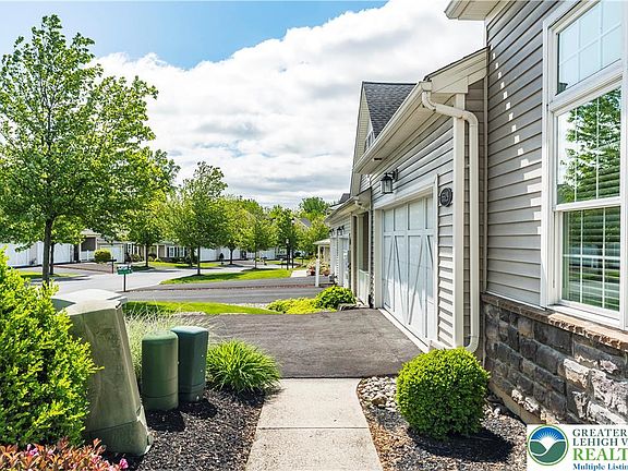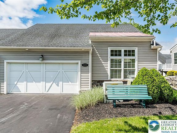 Welcome to 5529 Briar Ln in the desirable 55+ Briarwood Commons community in Whitehall, PA! This beautifully maintained and freshly painted end-unit offers 1,539 sq ft of thoughtfully designed living space. Enjoy easy first-floor living with a spacious primary suite featuring a walk-in closet and ensuite bath. The open-concept layout showcases a bright living room with soaring 10-foot ceilings, a cozy gas fireplace, and gleaming hardwood floors. The kitchen boasts 42-inch cabinets, a wraparound counter with seating, and ample storage—perfect for entertaining. Upstairs, you’ll find two unfinished rooms that offer incredible potential—finish them for additional bedrooms, a home office, or hobby space. Step outside to your low-maintenance Trex deck—ideal for relaxing or hosting guests. Additional highlights include efficient gas heating, a 2-car garage, and access to a friendly, well-kept community. The HOA covers lawn mowing, mulching, snow removal, and access to the community clubhouse. Conveniently located near major highways, shopping, dining, and medical centers. Live comfortably, live confidently—schedule your private tour today!
