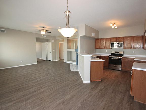 Immaculate and move in ready! Fresh paint inside and out, plush new carpet, new plank flooring and new stainless steel kitchen appliances. Soothing fireplace in living area. Popular open floor plan. Bright and spacious. Covered patio and private backyard. A must see!