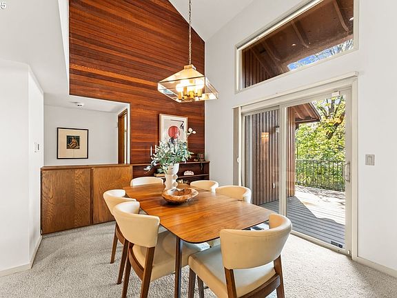 Multiple Offers Received.. Tucked away in the quiet Reed neighborhood, this NW Contemporary lives like your very own treehouse. Open floor plan with vaulted ceilings, cedar accents, and windows showcasing views of OHSU and the West Hills. Custom built in 1981 (currently carpeted throughout in era-appropriate wall-to-wall, awaiting your design vision) and on the market for the first time, the flexible layout offers , two primary suite options—one on the main and another upstairs—plus a third bedroom/flex room on the lower level. The upstairs loft adds even more versatility for an office, studio, or lounge. A brand-new roof and expansive deck create private outdoor living among the trees. Despite its seclusion, the home is just steps from Reed College w/trails and blocks to Woodstock’s shops, cafes, and restaurants. A rare blend of retreat and convenience within inner SE Portland.