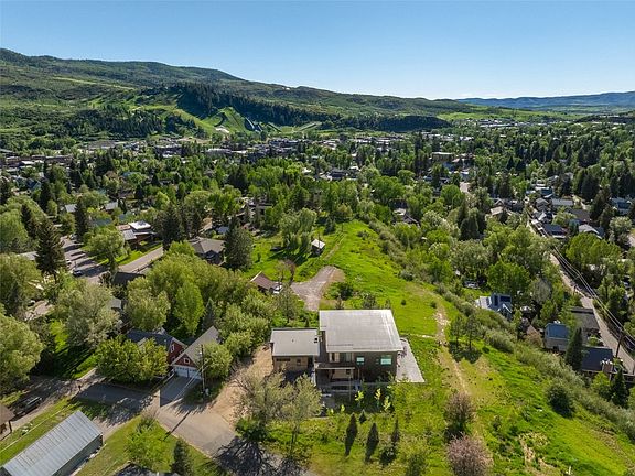 Tucked away in downtown Steamboat, this custom home is a masterpiece of collaboration between a seasoned local contractor and a creative designer. Perfectly situated on a secluded and elevated homesite offering stunning views in every direction, seamlessly connecting you to the outdoors. The elegant minimalist design incorporates custom, natural elements such as walnut cabinetry, white oak flooring, sisal wallcovering, and Sho Sugi Ban siding, creating a rich palette of finishes. The main living space is designed for conviviality, featuring a cozy sunken living room with a gas stove, a glassed-partitioned office with a Dutch door, a large kitchen island, a generous dining area, and an inviting breakfast nook illuminated with natural light and splendid fixtures. A bi-folding door on the main floor allows easy access to the outdoor patio. The primary bedroom provides private views of Strawberry Park, adjacent to a large deck. This retreat is coupled with a spacious European-style bathroom and a large walk-in closet. Two additional large bedrooms with ensuite baths and loft spaces share a deck overlooking Howelsen Hill. This level also hosts a bonus room with a deck- a perfect spot for peaceful meditation or an office. The lower level boasts a vibrant, expansive family/game space, an additional bedroom suite with a steam room, and two storage rooms. Connected to the main house via a breezeway, the two-car garage includes a beautiful one-bedroom apartment for guests or a very much sought-after rental. This unusually large downtown property has multiple off-street parking spaces. This home is particularly quiet and easy to live in and out of, with Spring Creek and Butcher-Knife trails, and Old Town hot springs right outside the door. Don't miss the chance to live in this fabulous, well-being-inspiring home.. Basement: FNSH,FULL